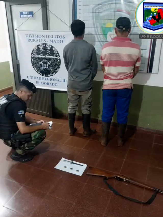 Durante la intervención, los uniformados identificaron a Carlos C. (57) y Julio A. (43), quienes se encontraban en la zona portando un rifle calibre 22 largo, marca Worning, junto a 15 municiones del mismo calibre.