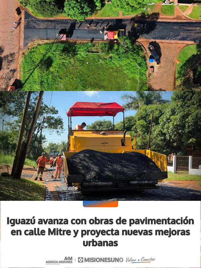 La Municipalidad de Puerto Iguazú inició trabajos de pavimentación sobre el empedrado basáltico en calle Mitre, con el objetivo de mejorar la conexión entre las avenidas Libertad y Néstor Kirchner, en un tramo estratégico para la circulación urbana.