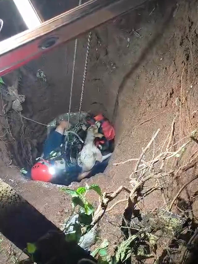 Según se informó, el animal había caído en un pozo de aproximadamente 11 metros de profundidad, lo que requirió la intervención de personal capacitado y equipamiento adecuado para garantizar un rescate seguro.