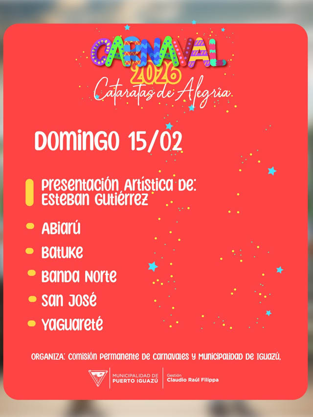 Desde la Municipalidad de Puerto Iguazú destacaron que el carnaval constituye una de las fiestas populares más importantes de la ciudad, promoviendo la cultura, el encuentro social y el disfrute de los espacios públicos en un entorno emblemático como la costanera.