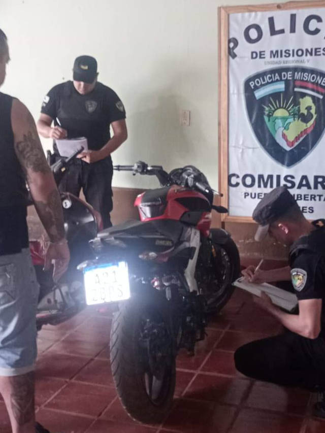 A partir de un rastrillaje en la zona, se desplegó un operativo cerrojo que permitió la detención de Ángel D., domiciliado en Puerto Libertad, quien circulaba en otra motocicleta Honda Biz 125 con una placa de dominio que no correspondía al rodado.
