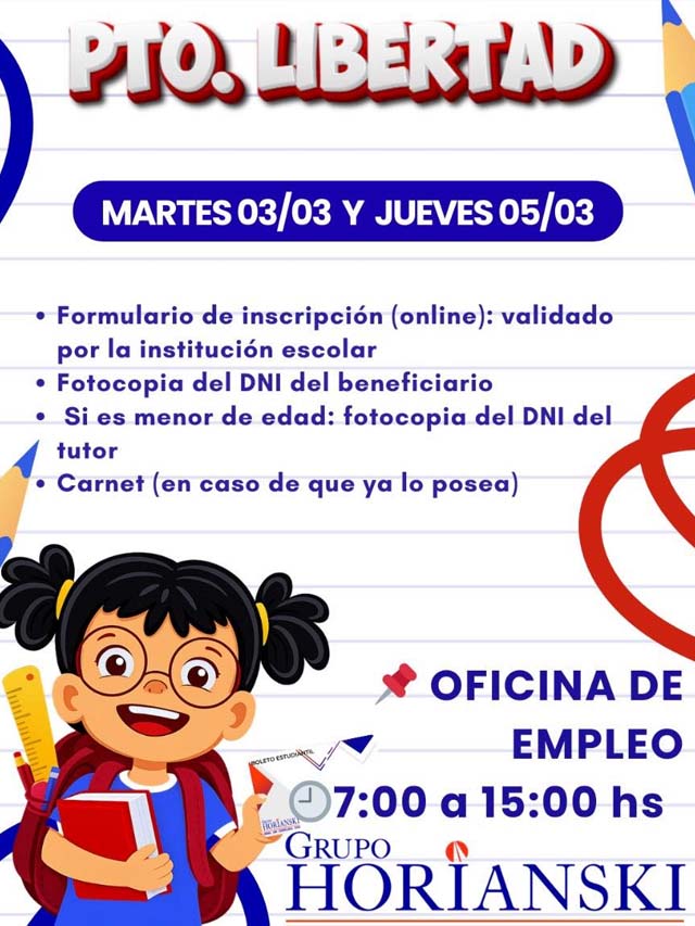AGENCIA MISIONES.UNO | La actualización del Boleto Estatal Estudiantil Gratuito se llevará a cabo los días martes 3 y jueves 5 de marzo en la Oficina de Empleo, en el horario de 7 a 15 horas.